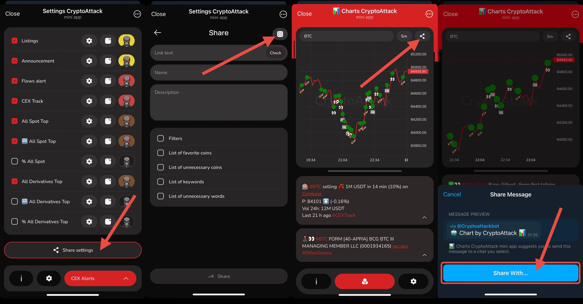 Additionally, you can share a chart link with your pre-selected filters, allowing people to view the price charts of specific coins with all the necessary data and indicators. This link also acts as a referral link, and you can embed it directly into your posts, making it easy for your audience to track price changes in real time.