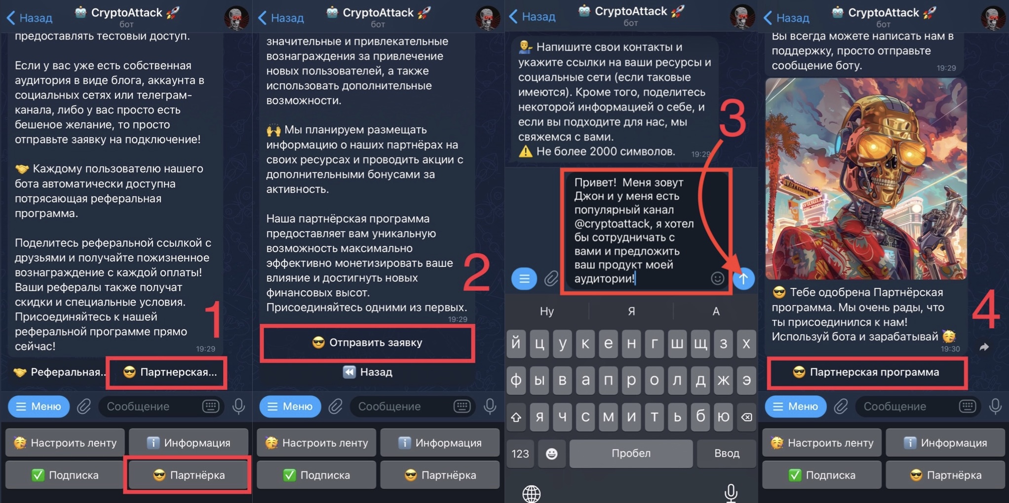 ⚠️ You can always contact us through the bot to clarify details or get more information and terms about the program. We are happy to discuss potential future cooperation with you.